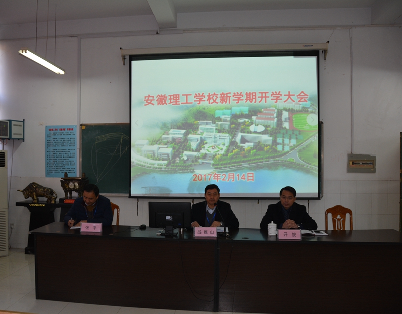 2月14日上午9点,我校2017年新学期开学大会在南校区召开,校领导班子及全体教职工参加大会。副校长开俊主持会议。