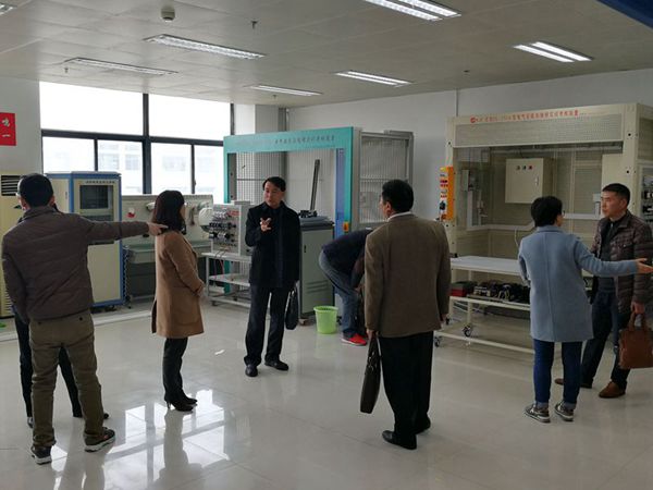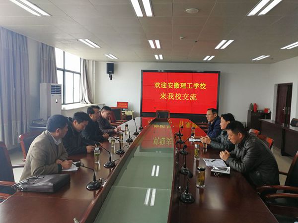 芜湖高级职业技术学校党委书记、校长朱贤忠,副校长丁军、王志庆及相关处室负责人热情接待了调研小组。开俊副校长首先介绍了此行的目的和6个主要考察内容,朱贤中校长介绍了芜湖高级职业技术学校在教学模式、实训基地和校园文化等方面的创新和打造教学模式、校园文化建设、学生管理三个升级版方面的做法,该校信息中心苏主任介绍了“班班通”的管理经验。两校针对信息化飞速发展的当下如何有效运用信息化技术提升教学实效、信息化教室建设和学生管理、后勤管理等方面进行了广泛深入的交流。调研小组参观了芜湖高级职业技术学校党建工作室、学生成长中心、校史馆和教室、实训基地、教师办公室和学生宿舍,重点考察了信息化教 室的布局设计和设备设施,并认真询问和记录,大家对该校自行设计的教室收纳柜予以赞许。