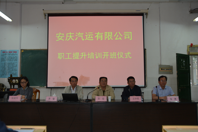 5月7日,安庆汽运有限公司职工提升培训班在我校南区正式开班。公司董事长彭宏、总经理王中明及我校副校长开俊参加了开班仪式,社会培训部主任张勇主持仪式。