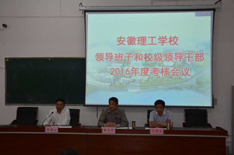 5月11日,我校召开2016年度领导班子和校级领导考核述职大会。省教育厅人事处副处长童兆胜、 职成处副调研员汪德金出席。学校领导班子成员、副科级以上干部、中级以上职称人员参加了述职大会。大会由校长吕维山主持。