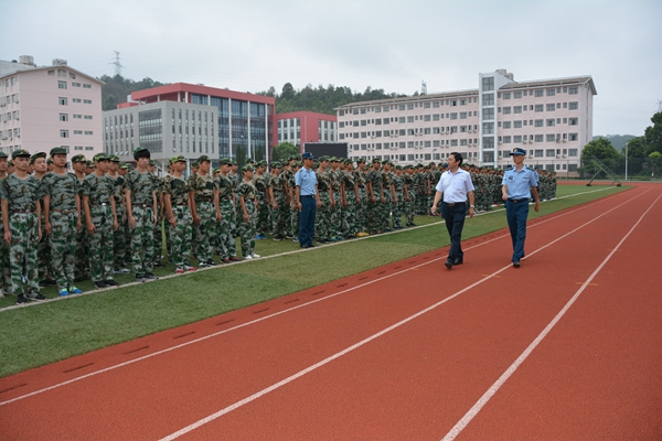 8月30日,我校2017级新生军训汇报表演在北校区田径运动场隆重举行。学校领导吕维山、开俊、江庆明出席,驻宜空军某部队训练教官、学校相关职能部门负责人以及2017级全体新生参加,汇报表演由副校长开俊主持。