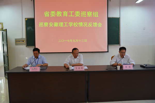 根据省委教育工委统一部署,省委教育工委第二巡察组于2017年5月26日至6月8日对安徽理工学校党委进行了巡察。在学校党委积极配合下,巡察组聚焦全面从严治党,对学校执行《中国共产党党章》和其他党内法规,突出落实“两个责任”,紧扣“六大纪律”,着力发现存在问题,顺利完成了巡察工作任务。周峰同志介绍了巡察工作基本情况,通报了我校在党委政治核心作用发挥,党建工作,全面从严治党,财务和基建等方面存在的问题和不足。并向学校提出了巡察整改意见:一是要充分发挥学校党委政治核心作用;二是要切实抓好党组织标准化建设;三是要以落实“两个责任”推动全面从严治党向纵深发展;四是要加强对重点领域重点环节的监督。