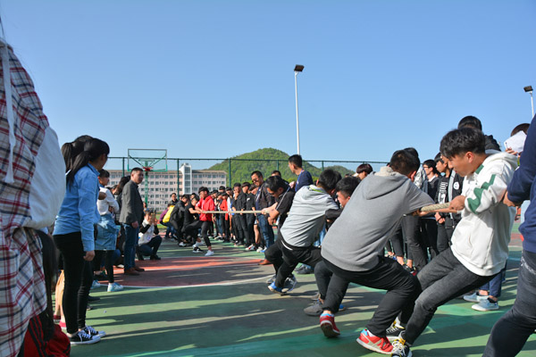 为了丰富学生的课余生活,培养同学们的团队合作精神和集体荣誉感,我校特举行了拔河比赛。