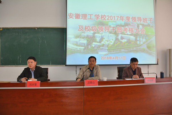 4月17日,我校召开2017年度领导班子和校级领导考核述职大会。省教育厅人事处副处长姚德勇、机关党委主任科员刘大智出席。学校领导班子成员、副科级以上干部、中级以上职称人员参加了述职大会。大会由校长吕维山主持。
