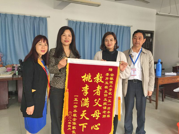 关心热爱学生,对学生负责,关注学生的全面成长是安徽理工学校全体教师的师德理念,李芹玉老师是理工优秀教师群体中的代表。学校中对学生高度负责,爱岗敬业的老师还有很多。这面锦旗是家长对学校老师们辛勤工作的肯定,更是一种鞭策与激励,同时也必将进一步促使全体教师以更高的工作热情和责任心来回报家长、回报社会。